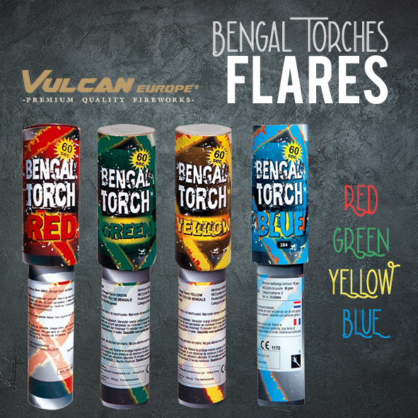 De Bengal Torches zijn beschikbaar in 4 kleuren : rood, groen, geel en blauw.