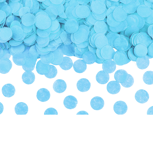Blauwe confetti, perfect om het geslacht van een jongen bekend te maken.