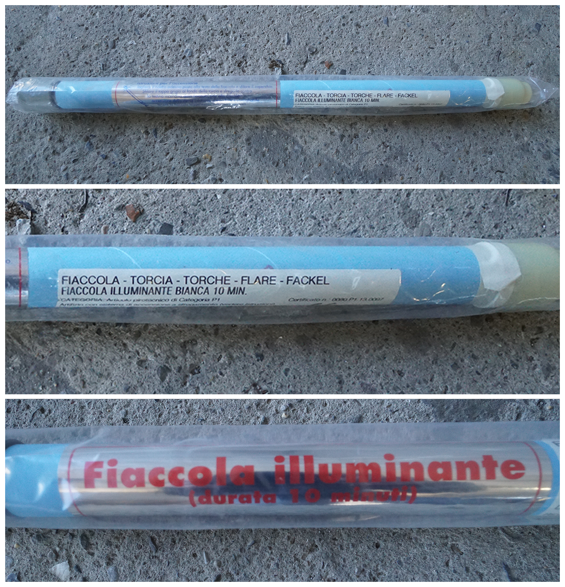 De Fiaccola Torcia Bianca wordt gemaakt in Italië door vuurwerkfabrikant Panzera.